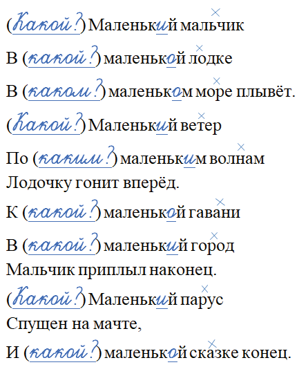 (Какой?) Маленький мальчик (муж. р., ед.ч., И.п.)