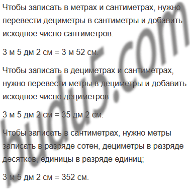 Задание № 1. Объясни по рисунку, как выразить в разных единицах счёта 3 с 5 д 2 е? Как выразить в разных единицах измерения 3 м 5 дм 2 см? Что ты замечаешь?
