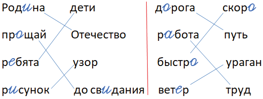 | Родина — Отечество прощай — до свидания ребята — дети рисунок — узор | дорога — путь работа — труд быстро — скоро ветер — ураган |