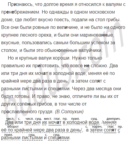 Но и крупные валуи хороши. Нужно только правильно их пр..готовить, что вовсе (не)сложно. Два или три дня их моч..т в холодной воде, меняя её1 по крайней мере два раза в день, а затем сол..т3 с разными листьями и спец..ями. Через два месяца они будут готовы. И право, не знаю, отличите ли вы их от других солё(н, нн)ых грибов, в том числе от прославленного2 груздя. (В.Солоухин)