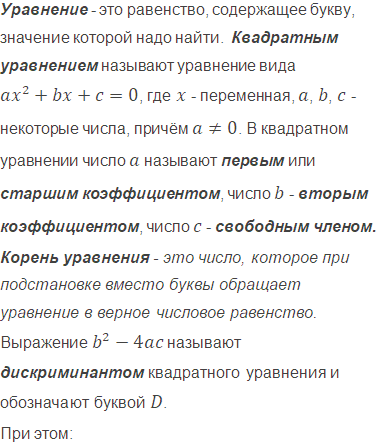 6. Какое выражение называют дискриминантом квадратного уравнения.