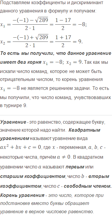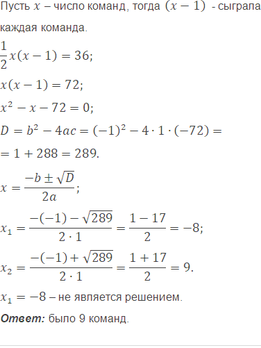 В футбольном турнире было сыграно 36 матчей. Сколько команд участвовало в турнире, если каждая команда сыграла по одному разу с каждой из остальных команд?