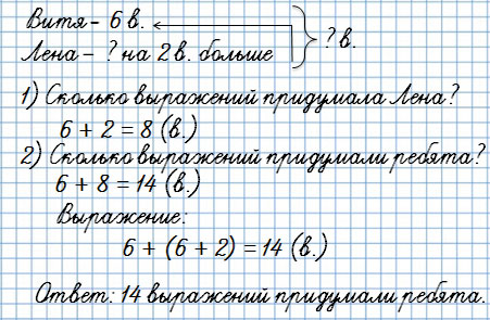 5. Витя придумал 6 выражений со скобками, значение которых равно 15, а Лена придумала на 2 таких выражения больше. Поставь вопрос и реши задачу.