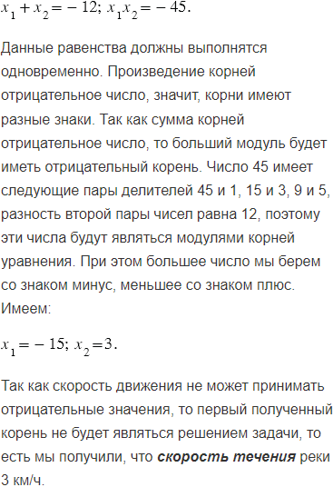 По течению реки от пристани отплыл плот. Через 4 ч от этой пристани в том же направлении отчалила лодка, догнавшая плот на расстоянии 15 км от пристани. Найдите скорость течения реки, если собственная скорость лодки составляет 12 км/ч.