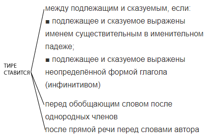 Рассмотрите схему и запишите по два примера на каждый случай постановки тире.