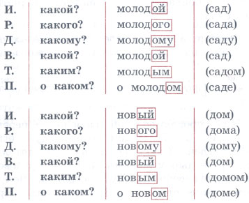 2. Обратите внимание на место ударения при склонении прилагательных. У какого прилагательного во всех падежах наблюдается расхождение написания окончаний с их произношением?